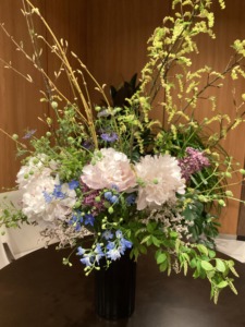その時々で花材のハーモニーを活かしたり、一つのお花を目立たせたり、
