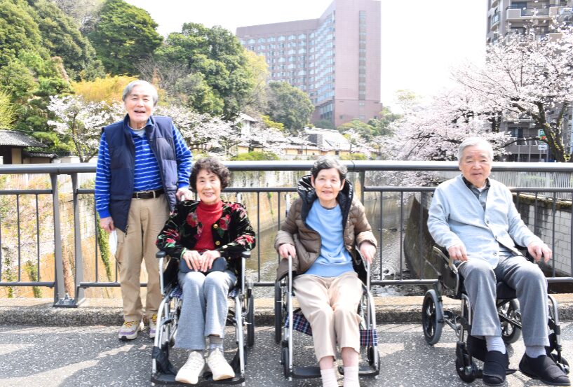 近隣の桜並木へは、スタッフが寄り添いながらゆっくりとご案内いたしました。