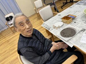 職員と共同で作品を仕上げる入居者様もいらっしゃいました。