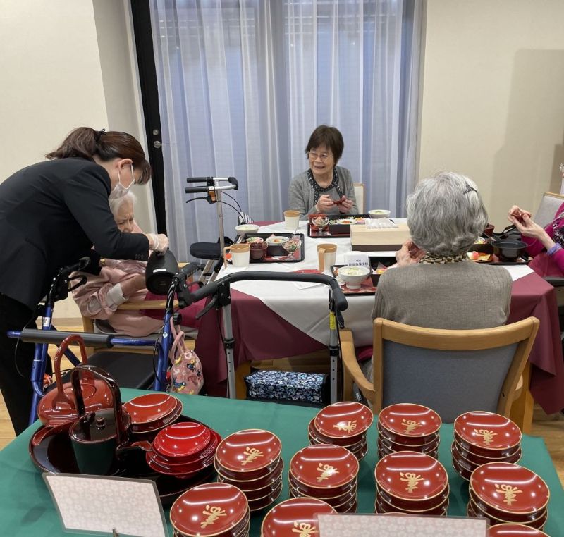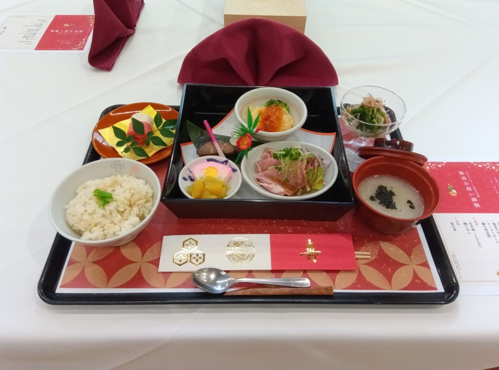 新しい年の始まりにふさわしく、1月1日の昼食は「新春 お祝い御膳」をご用意し、新年の幕開けを皆さまとお祝いしました。