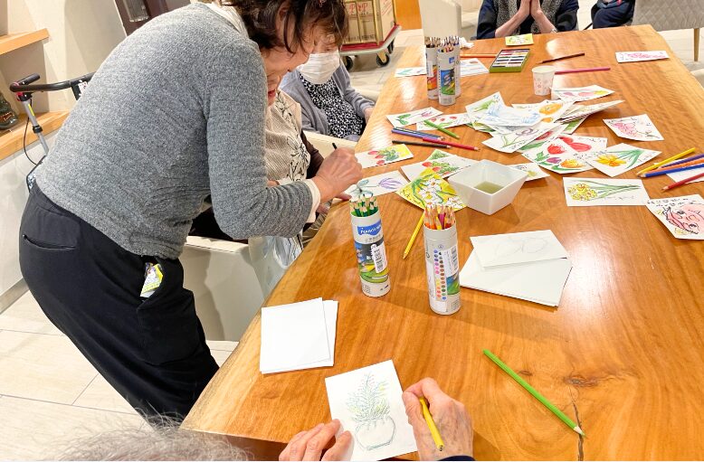 ご家族様のお名前を書き添える方もいらっしゃり、春の訪れとともに、気持ちも明るくなるひとときとなりました。
