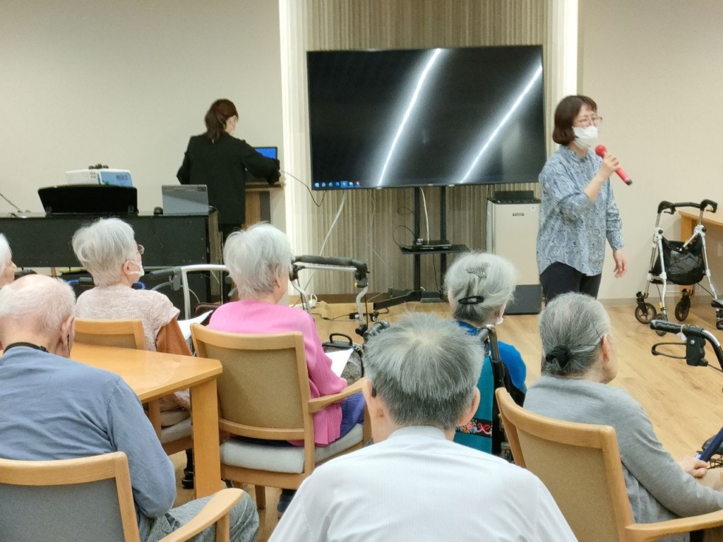 などなど、ピアノの軽やかな伴奏に合わせて 思い出の名曲を合唱しました 最初は恥ずかしそうにされていた方も 徐々に口ずさんで笑顔に♬ 普段静かなお客様が楽しそうに歌われているのを見て 私も嬉しくなりました!