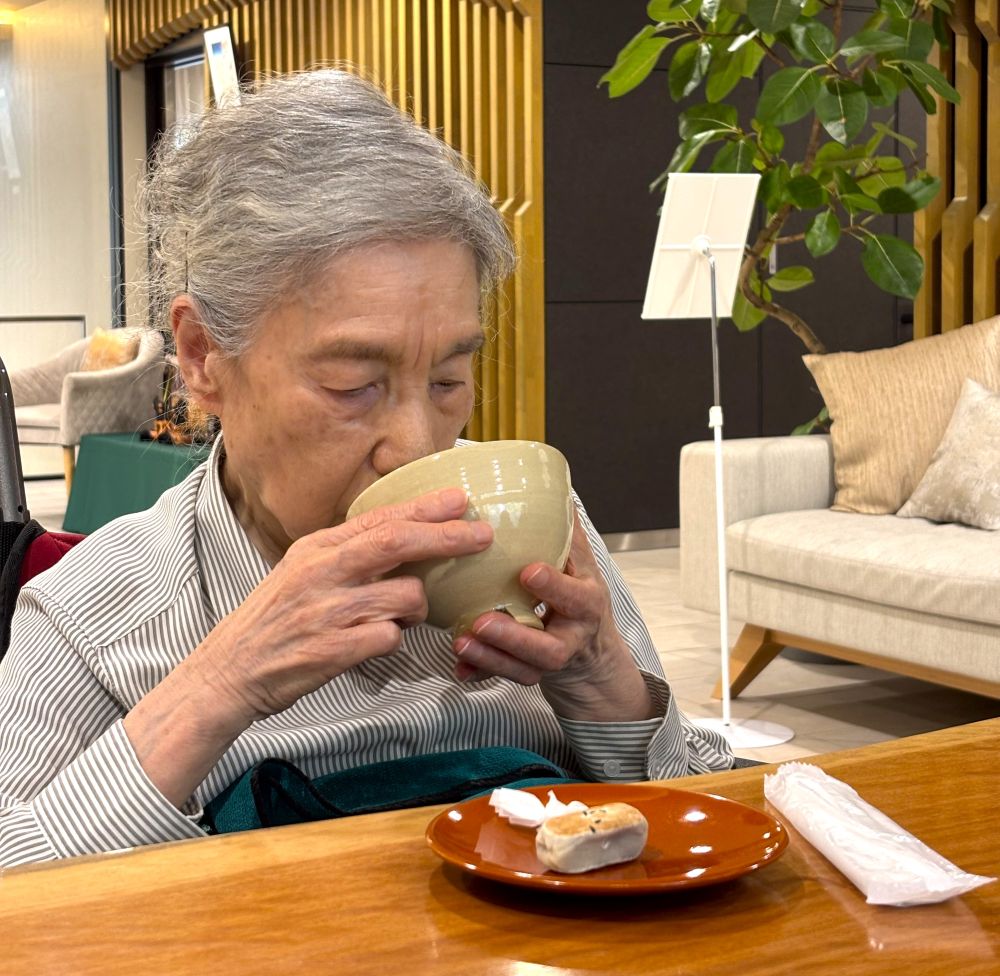 「心落ち着くわね、お抹茶の香りが穏やかにしてくるわ」