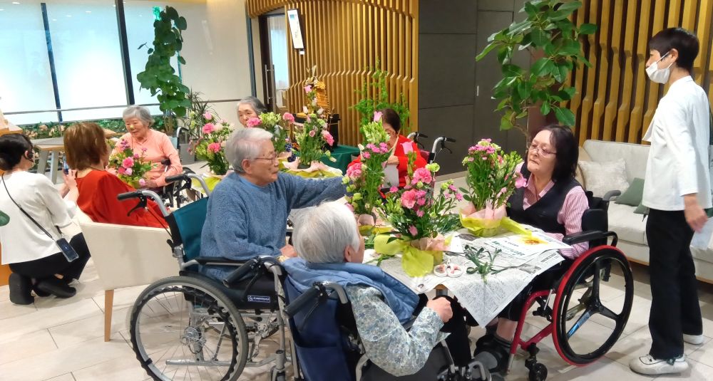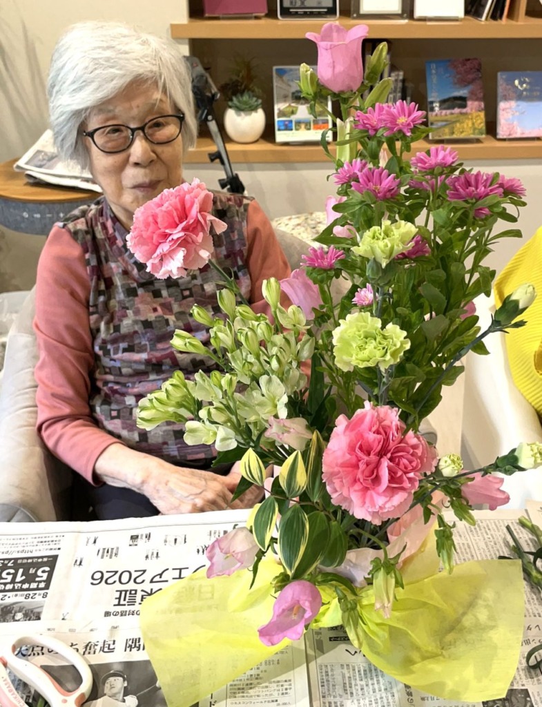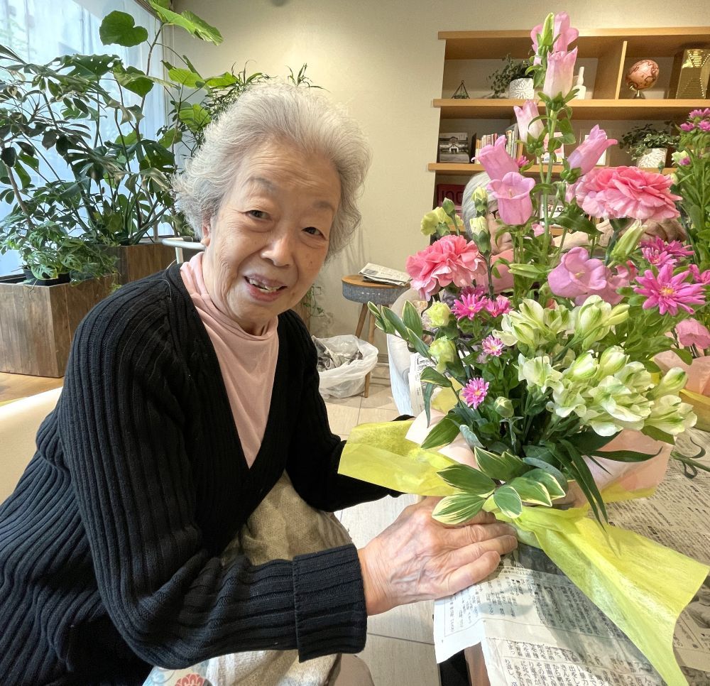 たくさんのお花を前に、「あら~可愛い」「今回は また春らしいお花ですね」