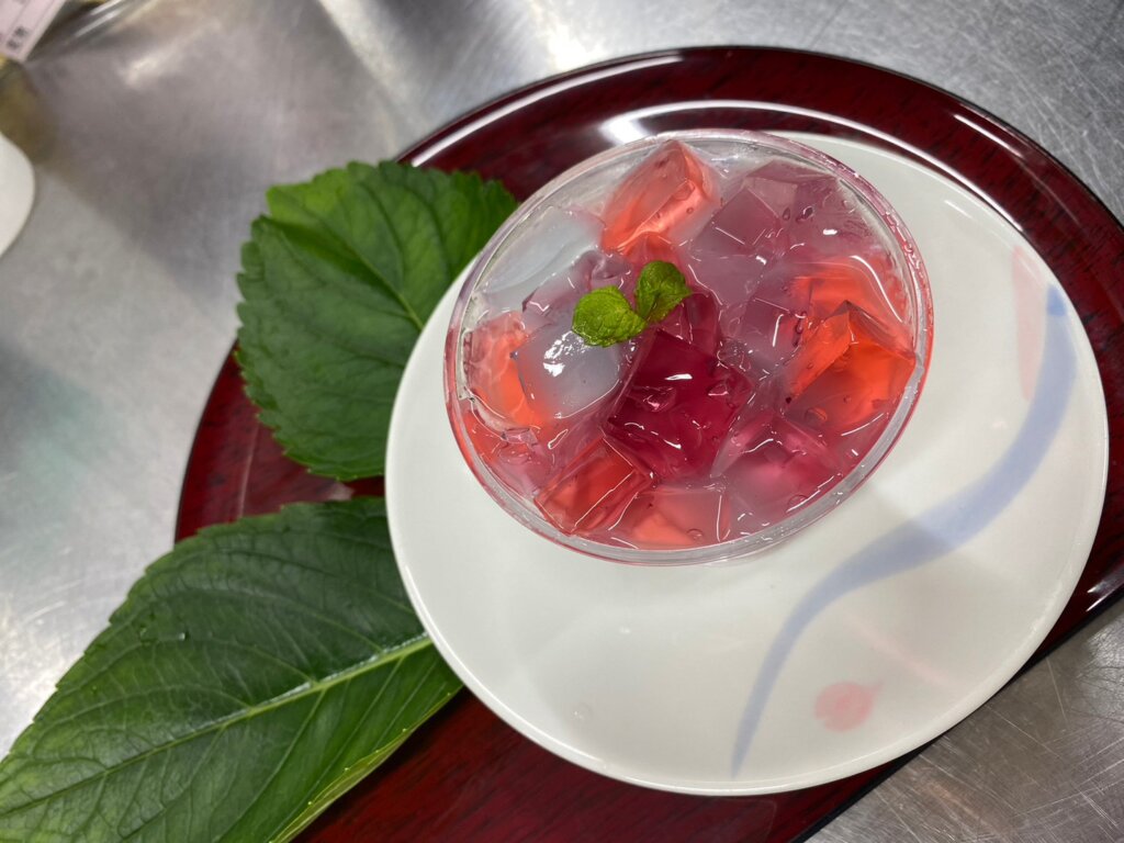 先月末、紫陽花の見頃が過ぎてしまう前にと、おやつイベント「紫陽花ゼリー作り」を皆様とご一緒に開催いたしました。