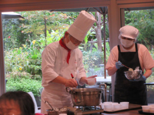 自慢の四季彩庭園で開催を予定しておりましたが、急遽ダイニングでの開催をいたしました。