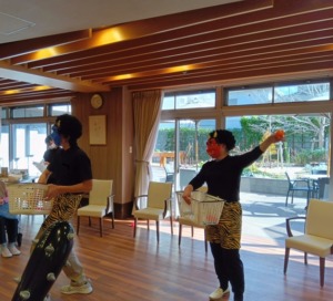 鬼さんたちは入居者様のお手元にカゴを寄せて協力します。実はとても優しい鬼さんたちです。