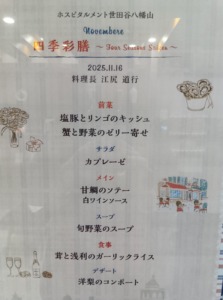 「きれいなお料理ね。」「お野菜がおいしいわ。」とご満足頂けて、料理長の江尻も一安心です。