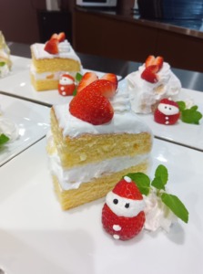 クリスマスを意識してホワイトクリームにイチゴが添えられた華やかなケーキとなりました。