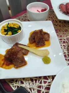 メインのサーロインステーキは二種類のソースで食べ比べでございます。