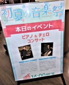 数々の国内外のコンクールにて入賞などを果たしている、ピアニストの秋田悠一郎さんとチェロ奏者の宇野健太さんをお招きし、ピアノとチェロのデュエットでクラシックや美空ひばりさんの愛燦燦など数曲を披露していただきました。