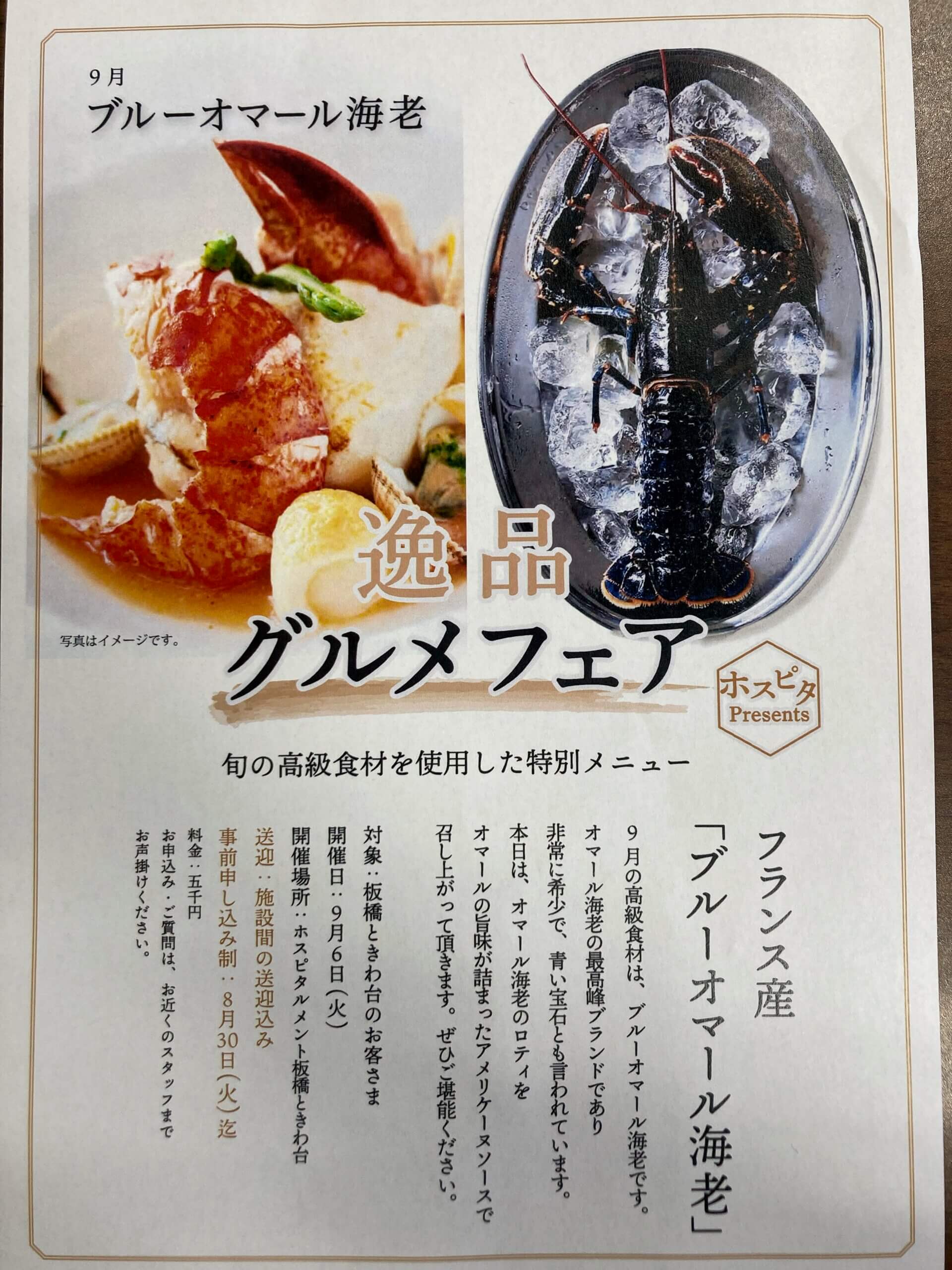 9月の逸品グルメフェアは【ブルーオマール海老】を準備しました。