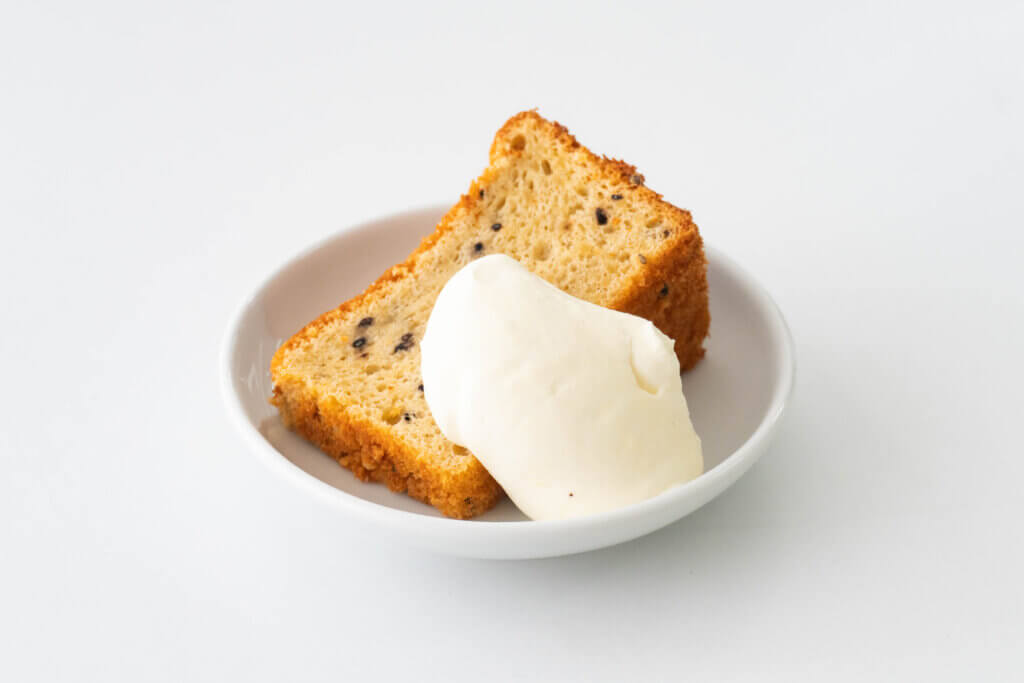 ~焼き芋をベースにした秋を感じるシフォンケーキです。焼き芋風味のホイップクリームとはちみつをトッピングしました~
