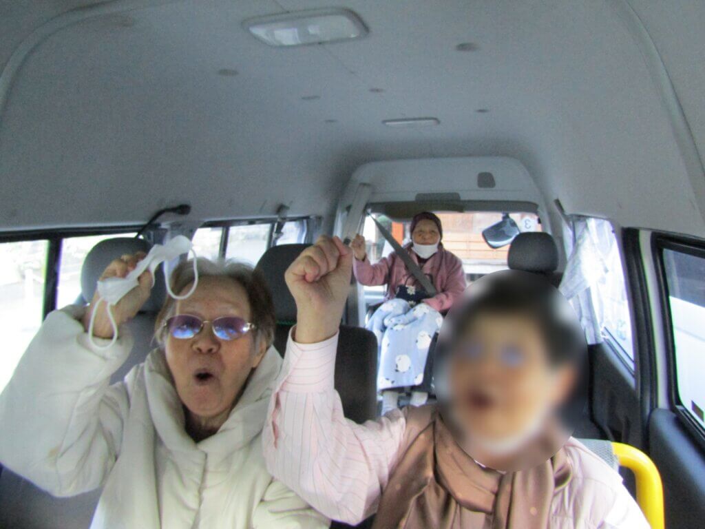 当日は冬晴れの清々しい空の下、ご入居者の皆さまと防寒対策をしっかりして、元気に出発!!