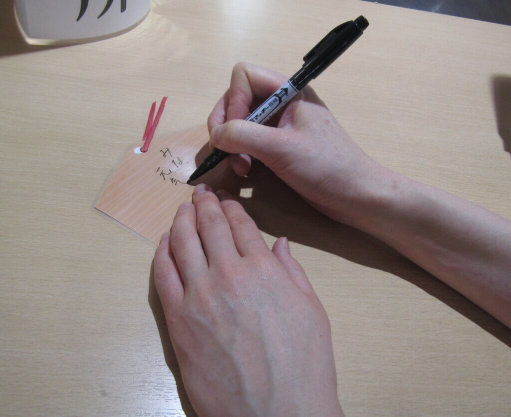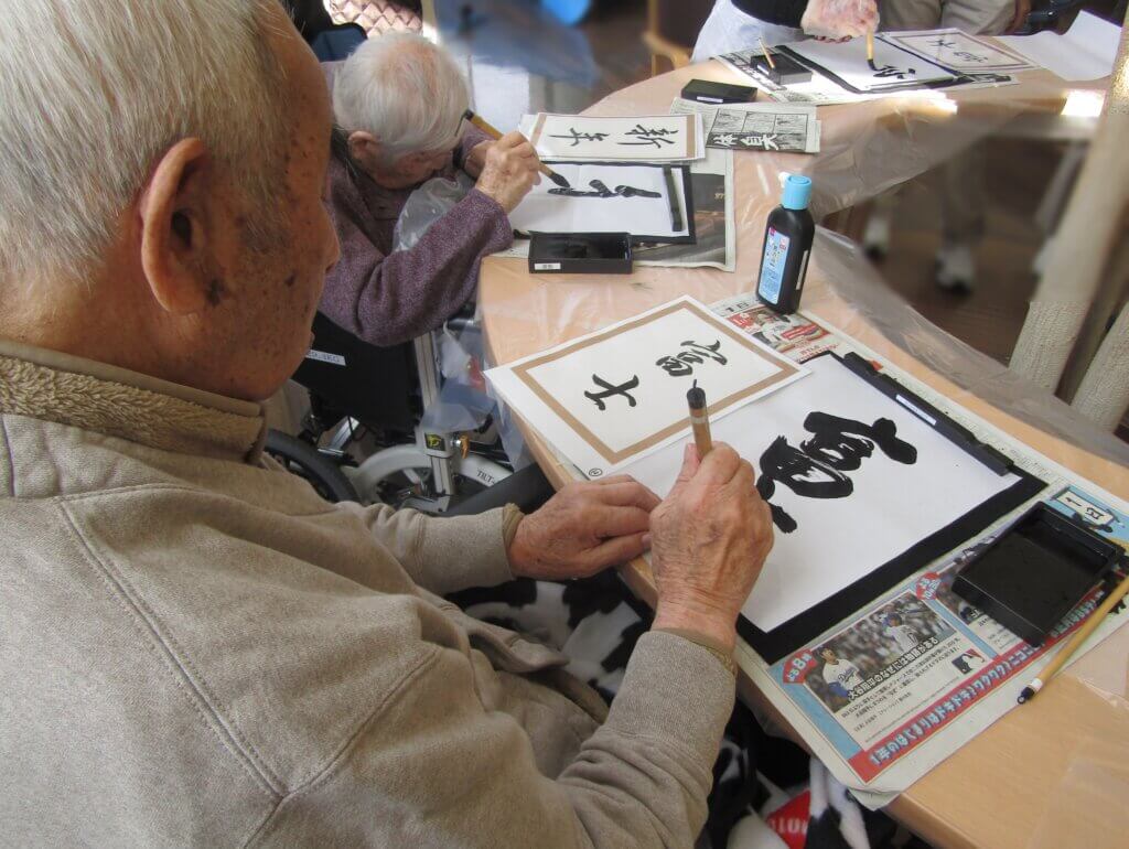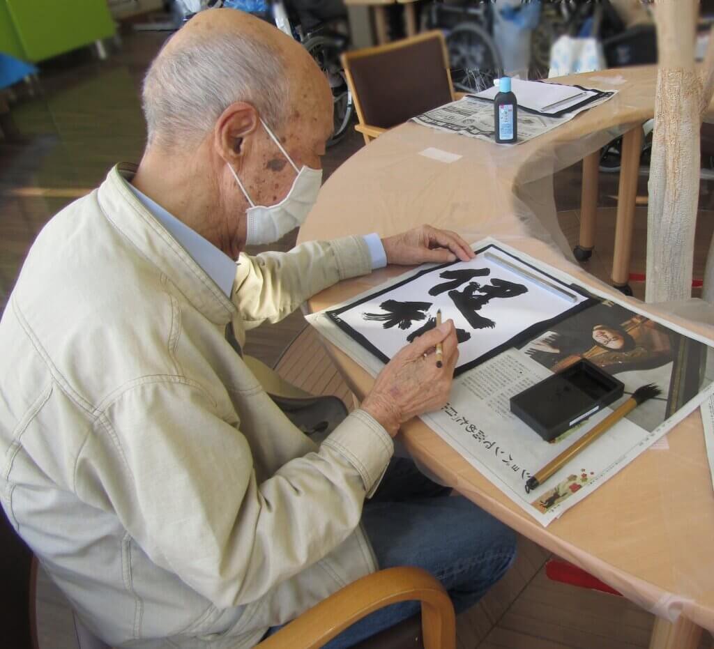 ご入居者の皆さまは、真剣な表情で筆を取り、それぞれの願いを丁寧に書き込まれていました。