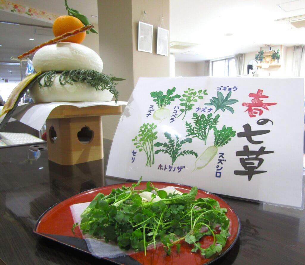 1/7(水)の昼食にて、今年も恒例の「七草粥」をご用意いたしました😊