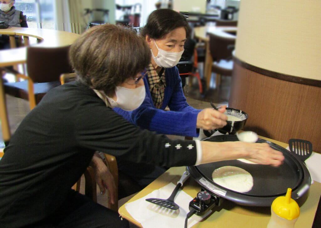 2/14(土)、バレンタインデーに合わせて、「クレープ作りレクリエーション」を開催しました。