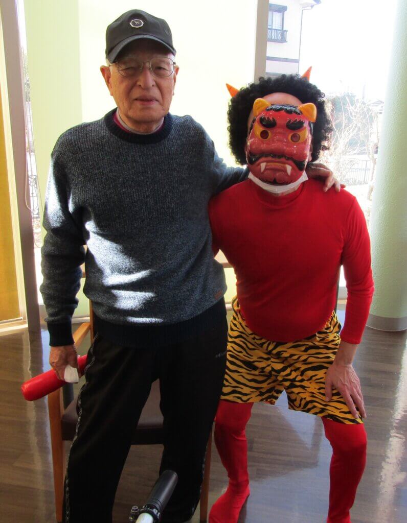今年も職員が赤鬼に扮して登場すると、食堂は一気に笑い声と拍手に包まれました😊