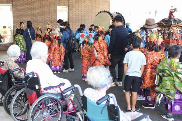 近隣にある笛田神社の秋季例祭に伴い、稚児行列の皆さまが当施設を訪れてくださいました。