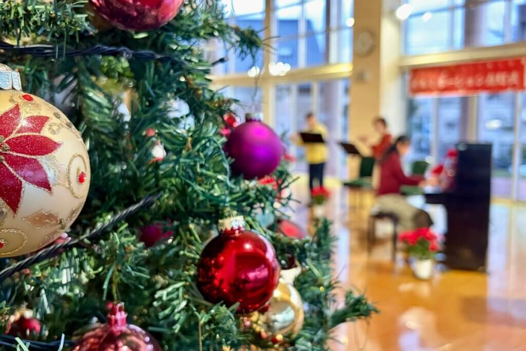 フルートとピアノの演奏をお招きし、冬やクリスマスにちなんだ曲をたっぷりと披露していただきました。澄んだ音色が広がるなか、会場にはふんわりとした温かさが漂い、お客さまもゆったりと耳を傾けておられました。