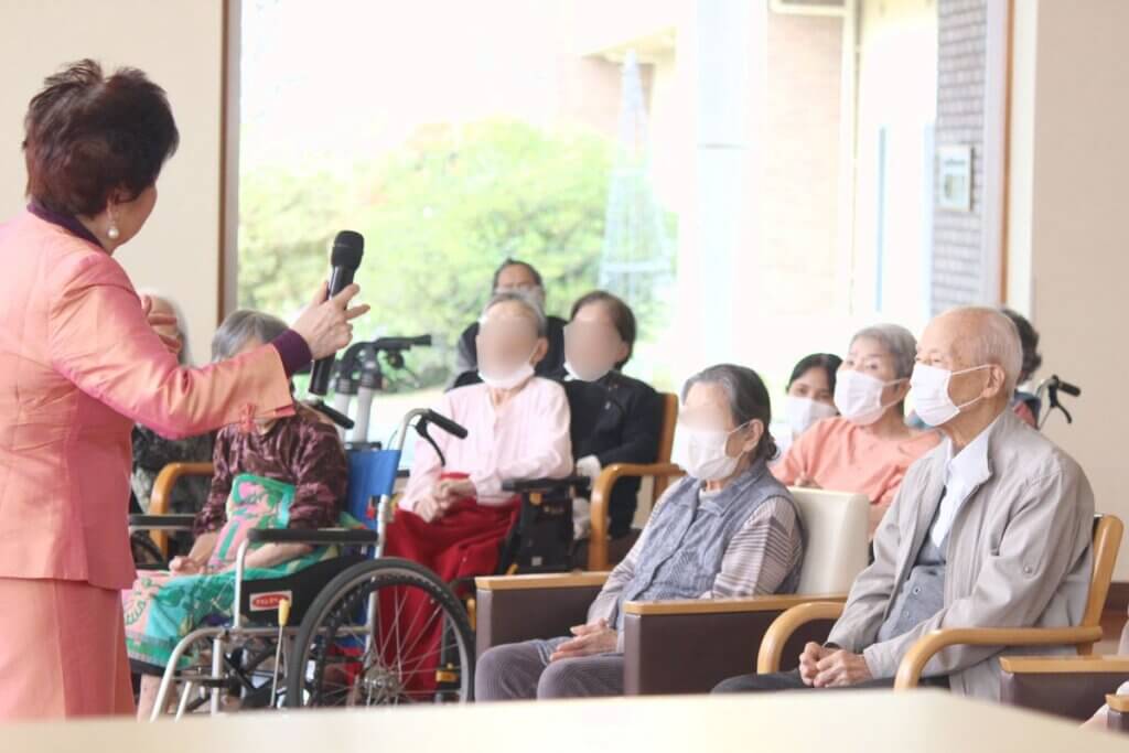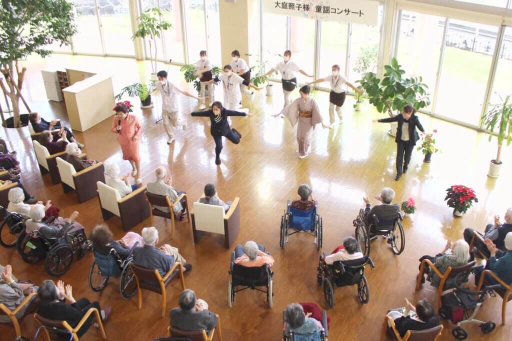 ホスピタルメント桜十字に童謡歌手の大庭照子さんが来てくださり、心待ちにしていたお客さまと一緒に、あたたかなコンサートの時間を過ごしています。