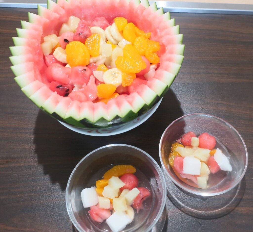 今回は、初物のスイカをフルーツポンチにして召し上がって頂きました🍉