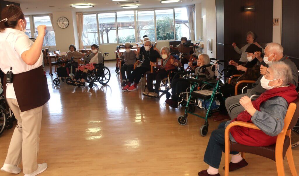 温かな日差しが差し込む午後、座ったままできる体操レクレーションを開催しました。