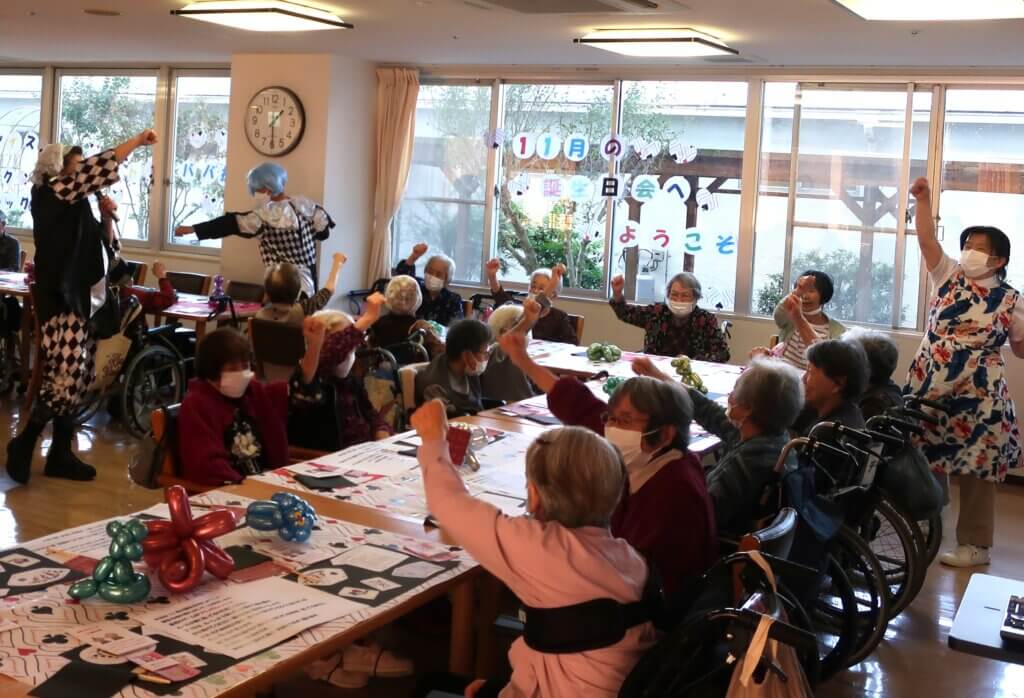 11月6日、この日はスタッフがピエロに扮して登場し、お誕生日会の前にお客様へ気軽に楽しめるミニゲームをご用意しました。