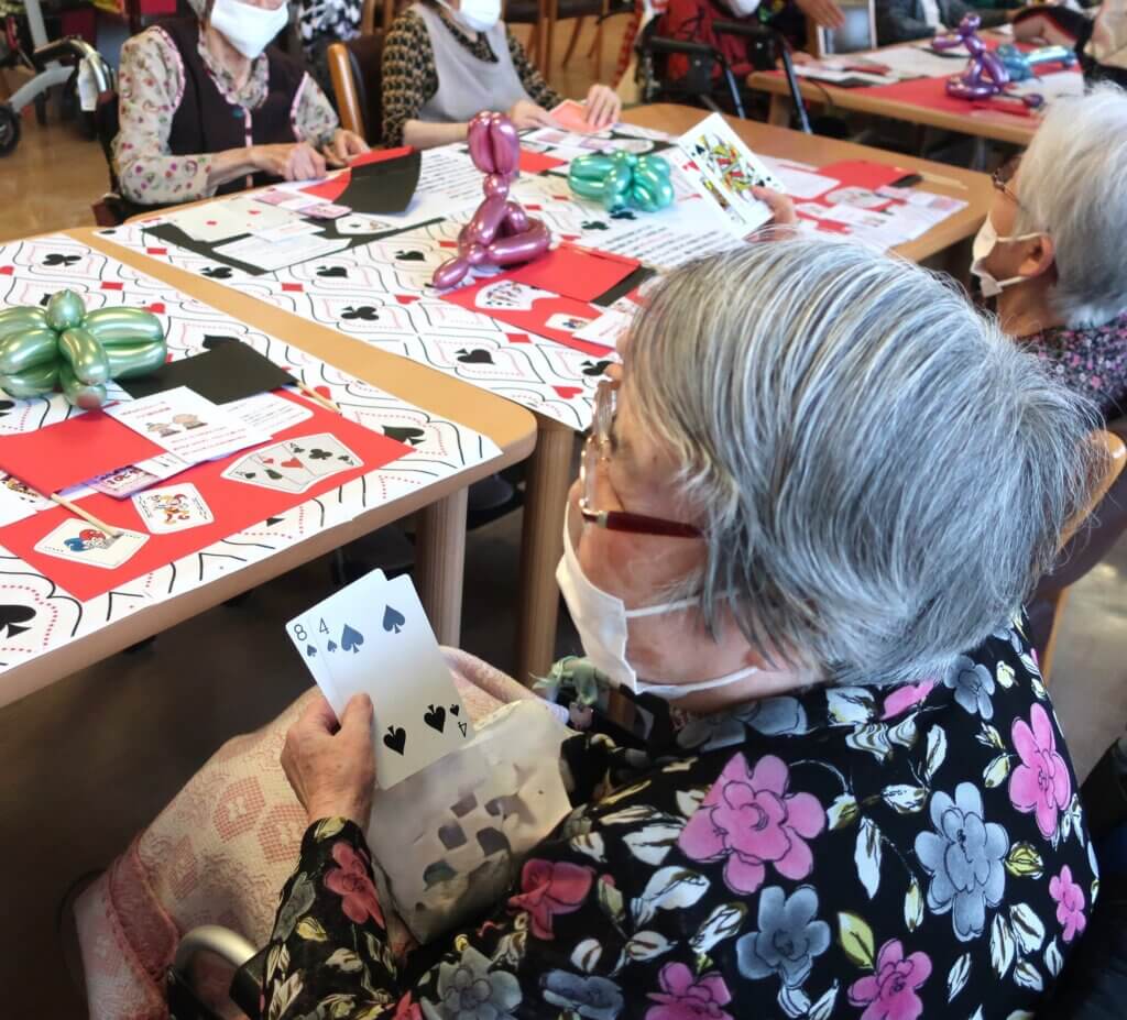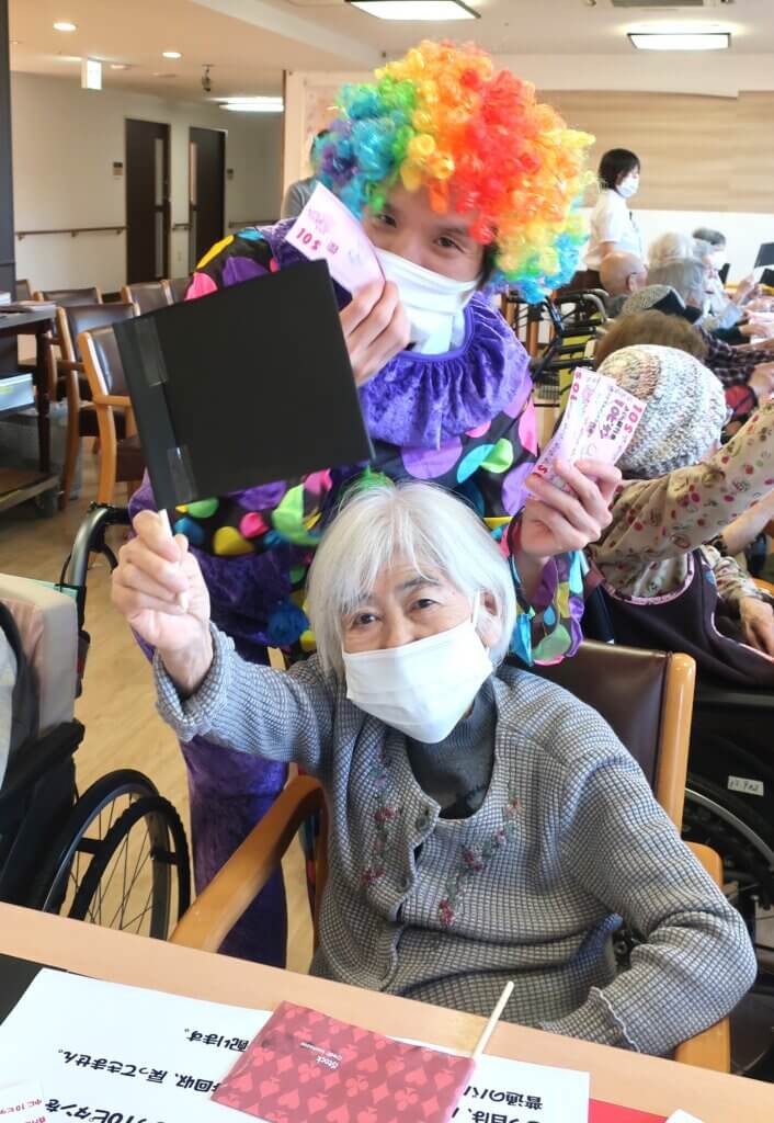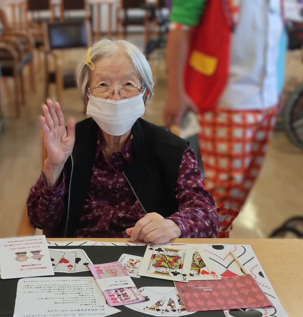 ブラックジャック、旗ゲーム、じゃんけんの3種で、脳トレ要素も加わったひとときとなり、皆さまは笑顔で参加されていました。