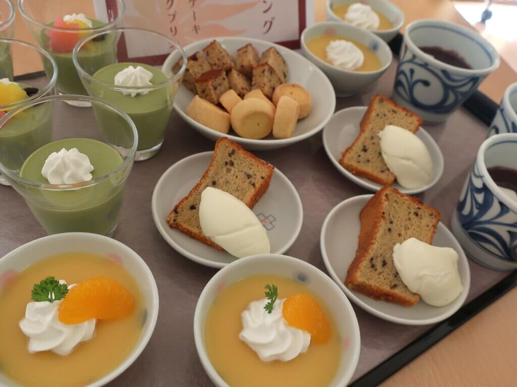 季節の果物を使った秋らしいデザートが並びました。