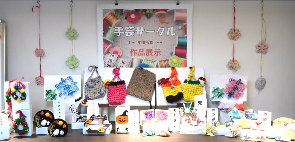 お越しの際はぜひ1階ロビーにお立ち寄りいただき、手芸サークルの温もりある作品をお楽しみください。
