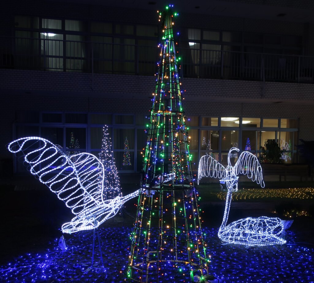 このイルミネーションは、病院の利用者・患者様、そして地域にお住いの方々に冬の心温まる思い出を届けたいという願いから始まり、今回で20回目となります。