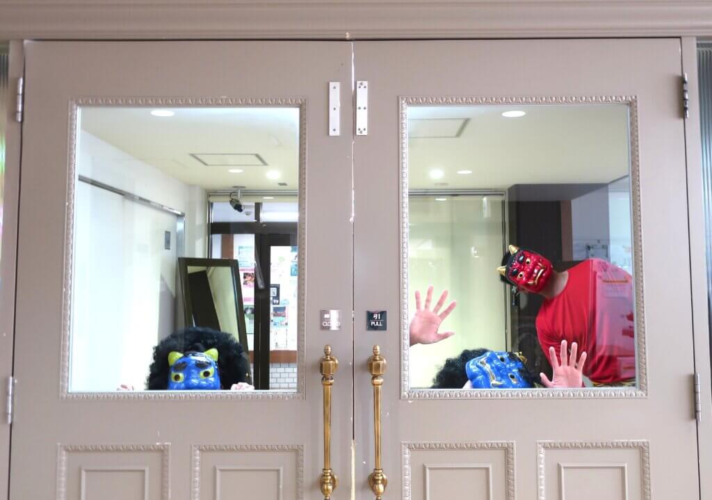 西館の前に、見慣れない3人の鬼の姿が・・・!