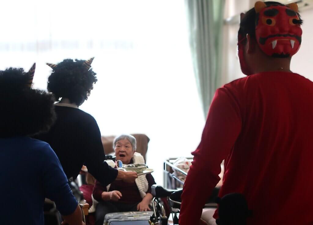 迫力満点の姿ですが、鬼の中身は、いつも寄り添う西館の男性スタッフ。