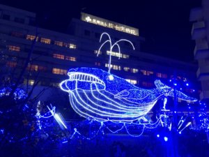 2020.11.28 スタッフブログ イルミネーションツアー イルミネーション点灯式も無事終わり、西館ではイルミネーションツアーが始まりました☆ 17時からの点灯に合わせて、ツアースタート!! 毎日、少人数のグループで楽しく散策♪ 作りこまれた作品にお客さまも興味津々♪ 今年はアマビエも登場し、「疫病退散」!! コロナウィルスに負けないよう、暗くなりがちな世の中を少しでも明るくする お手伝いができるよう、職員一同願いながらツアーはまだまだ続きます☆