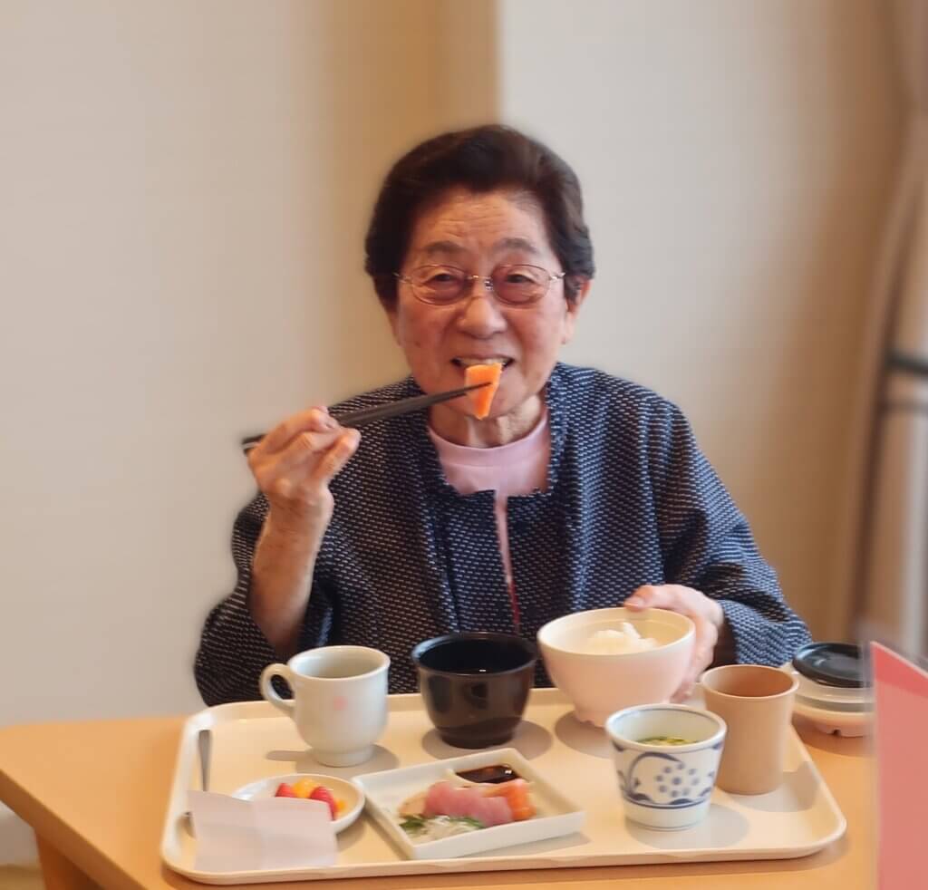 「お口に合いますか」とお声がけすると、ゆっくりとうなずかれ、満面の笑みに。