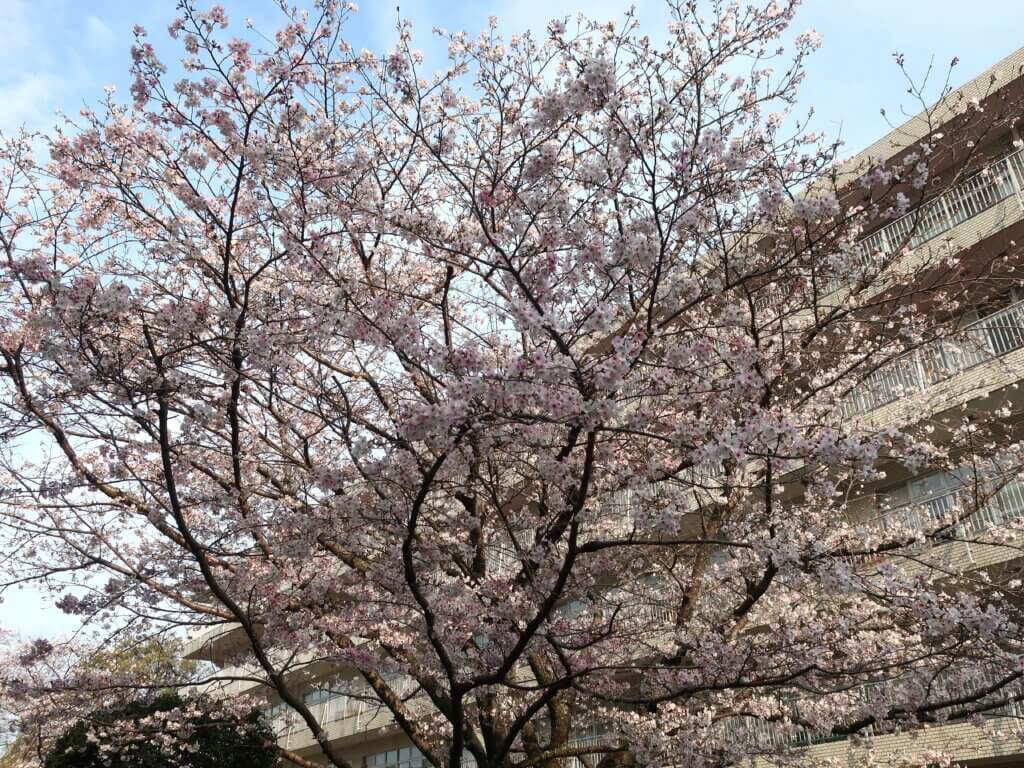 4階に掲示している桜は、ひと足先に満開を迎えました。