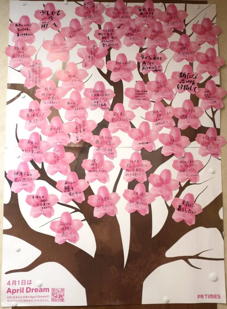 ひとりひとりの夢を桜のメッセージカードに記し、少しずつ花を咲かせてまいりました。
