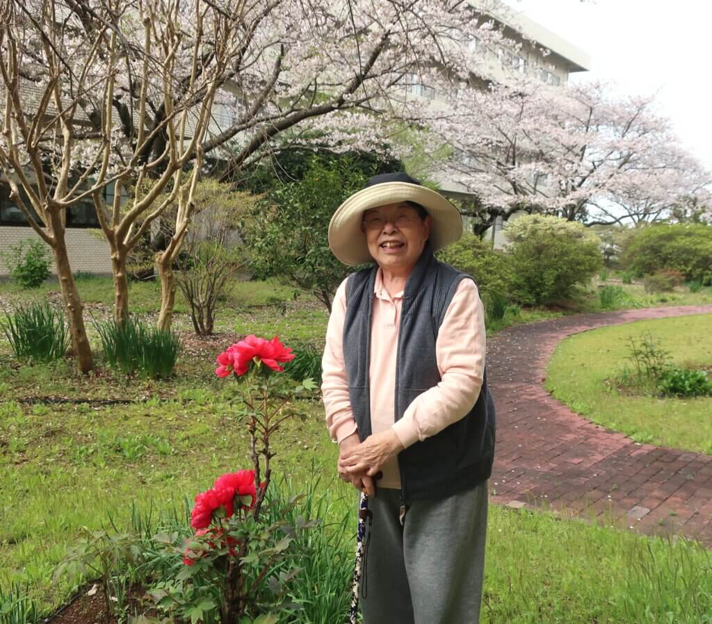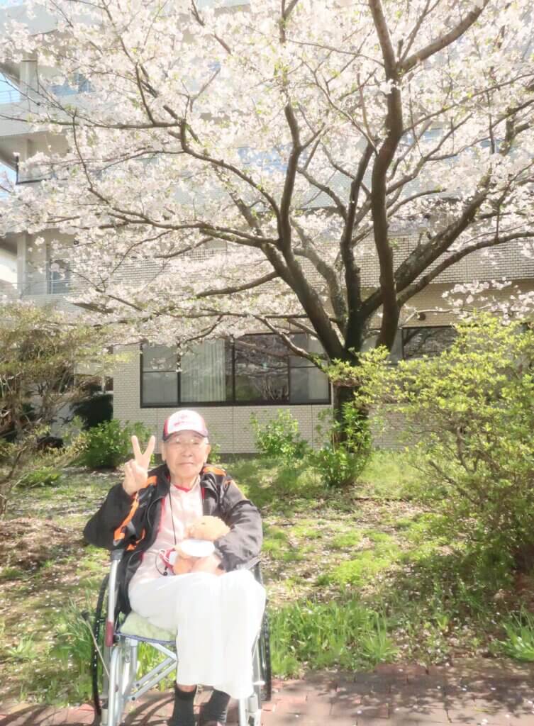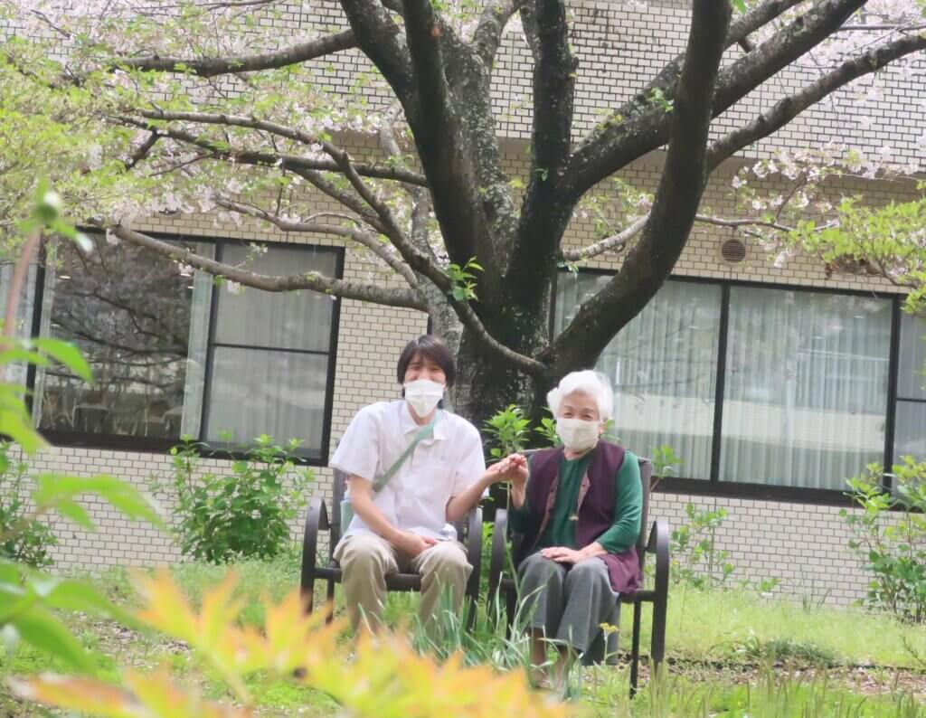 西館のお庭にて、お散歩を兼ねたお花見を行いました。