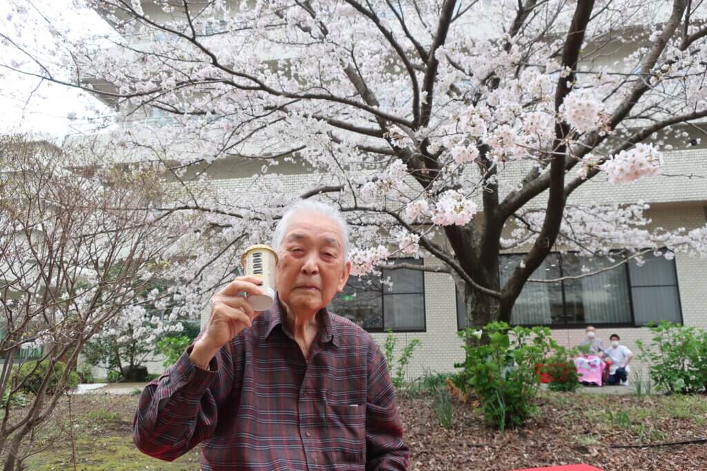 2021.03.19 イベント お花見❀ 中庭の桜が満開になりました。 美しい桜と共にお客様とお花見をしました。 「気はそぞろ 若い紳士(おかた)とハイチーズ」 「桜の下で ポーズ作って 美人顔?」 本日の感想を俳句にされるお客様。 赤い盤古に座っていただきお友達同士で談笑されるお客様。 ご夫婦で仲睦まじくご覧になられる方や ご自分の携帯電話で写真を撮ったり 飲み物持参でお花見されるお客様など、思い思いに楽しんで頂きました。