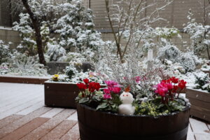 いつもは4階ダイニングルームからハッキリと見えるスカイツリーも雪に煙ってどこへやら・・・