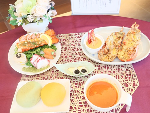 メインを飾るのは、風味豊かな 「テルミドール・ビスクソース」 テルミドールとは(フランス語:Thermidor)は、主に「オマール海老のクリーム焼き」を指す。ビスクソースは、甲殻類を裏ごしした、クーリと呼ばれるクリーミーなソースをベースにします。クーリに白ワインや生クリーム、トマトなどを合わせて仕上げる、濃厚な海老の旨味が凝縮されたビスクソースが、プリプリとした 食感のオマール海老をいっそう引き立て、会場には芳醇な香りが広がりました。