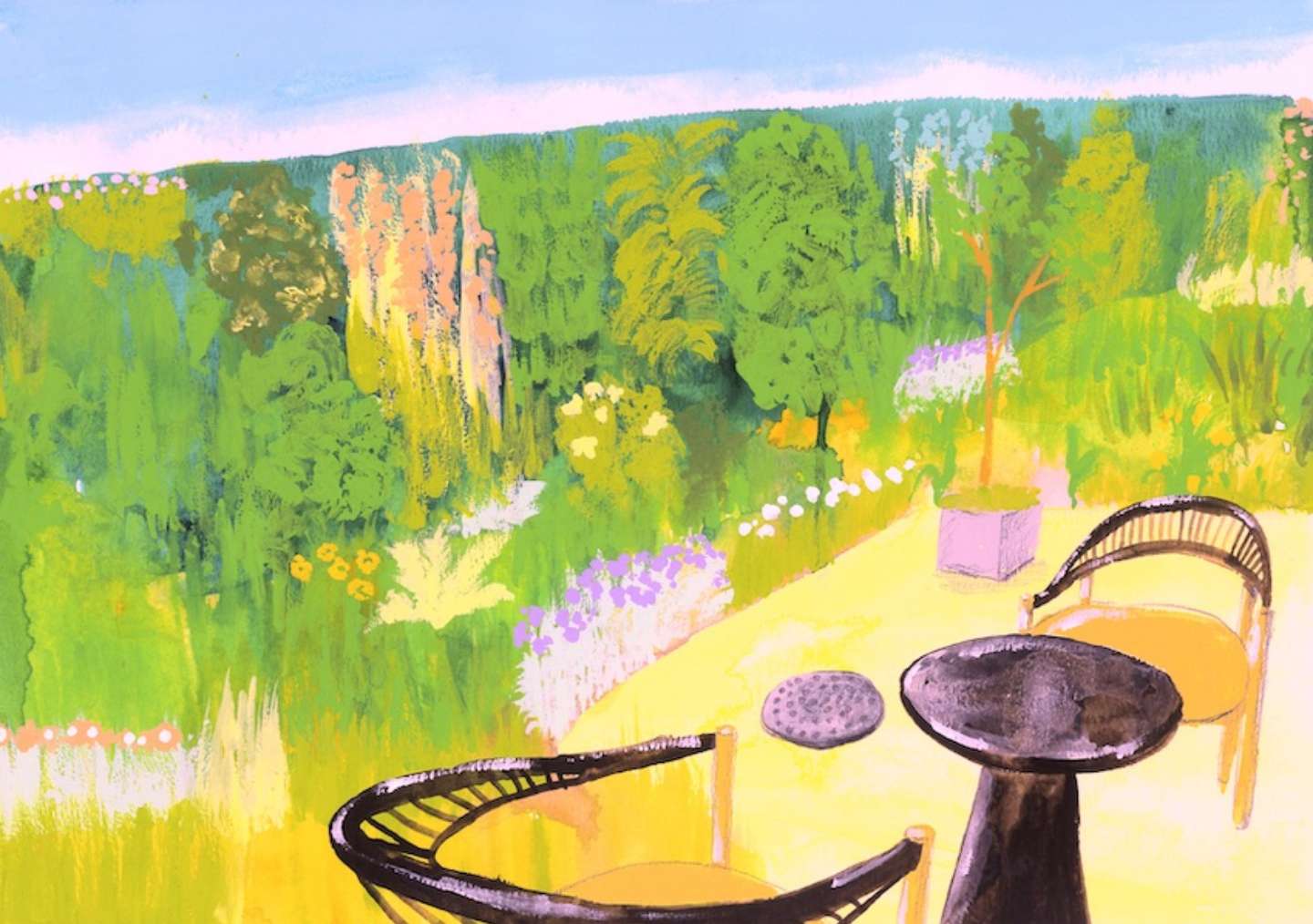 花や緑樹とともに。
