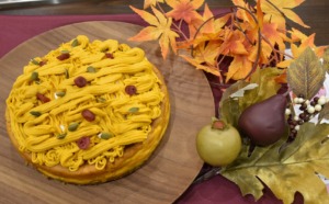 今月のバースデーケーキは、秋の味覚をたっぷり使用した「パンプキンモンブラン」。