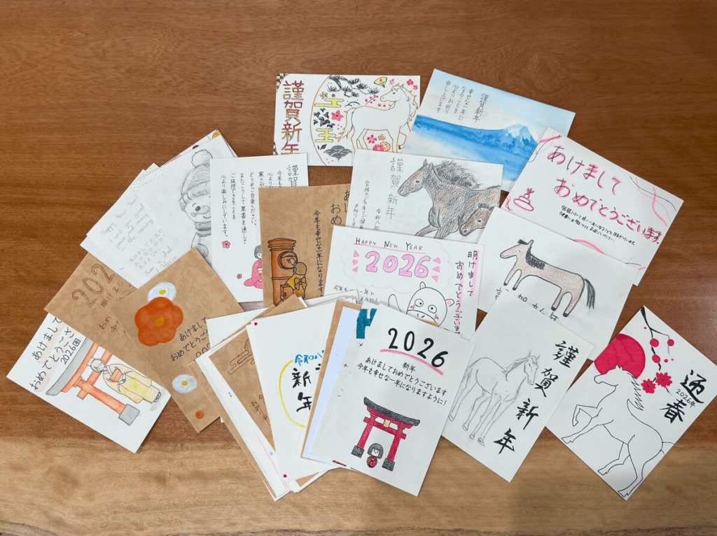 一枚一枚、丁寧に描かれたイラストや、温かい言葉が添えられた年賀状は、