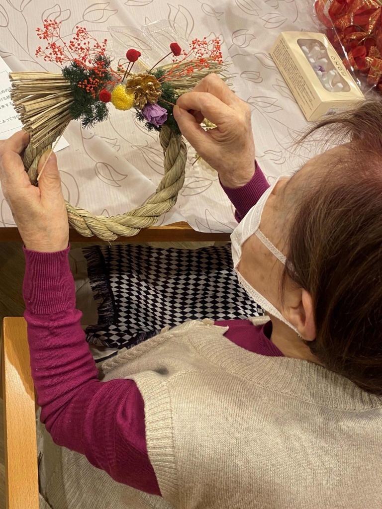 出来上がったしめ縄は、各居室や共有玄関に飾り、新年を迎える準備を進めています。