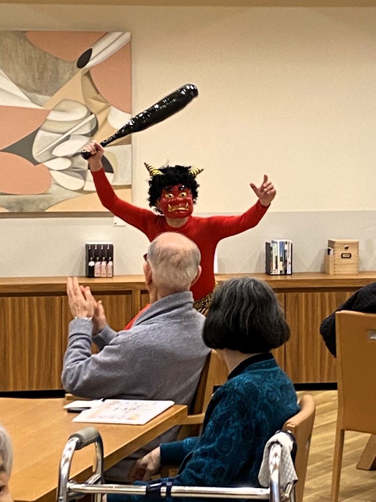 突然現れた鬼に、最初は驚かれるご利用者様もいらっしゃいましたが、豆まきが始まるととてもにぎやかな雰囲気になりました!